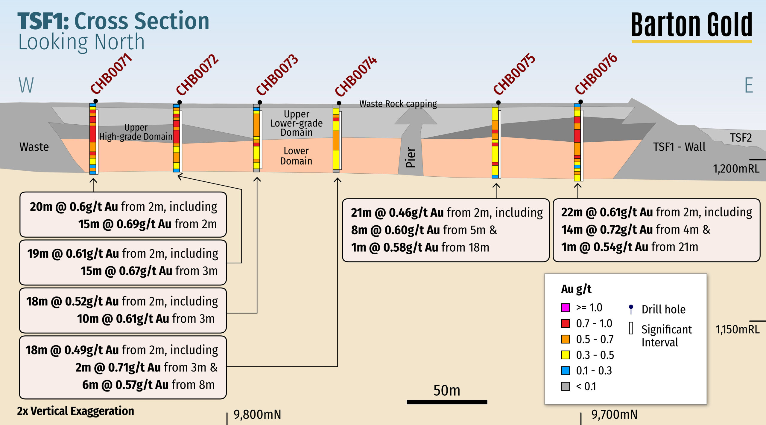 TSF1 has been identified as an attractive potential reprocessing opportunity, with estimated Mineral Resources of 56koz Au (3.19Mt @ 0.54 g/t Au) contained in historical processing tails.