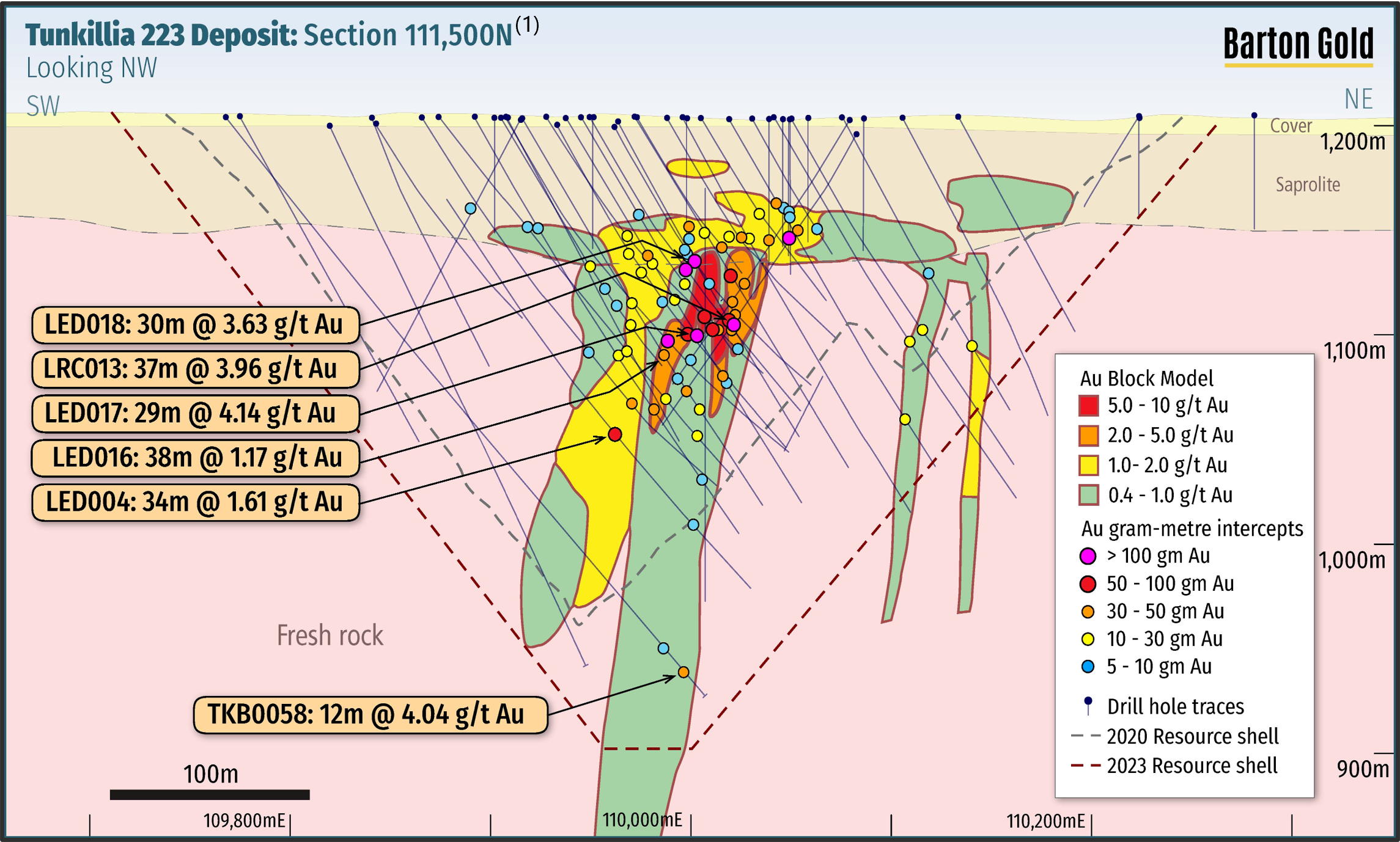 The Company has identified initial regional targets of interest and will undertake additional geophysical analyses to general a combined structural, geophysical and geological model and refine priority drilling targets. In particular, Barton will target regional analogues to the 223 Deposit area, as well as areas containing changes in shear orientation and intersecting regional structures along the western and eastern demagnetised zones.
